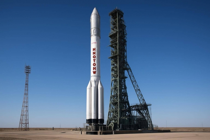 Фото разработано с помощью ИИИнформация опубликована в Telegram-канале "Роскосмоса". В сообщении говорится, что госкомиссия разрешила вывезти и установить ракету "Протон-М" на стартовом комплексе Байконура 9 февраля.